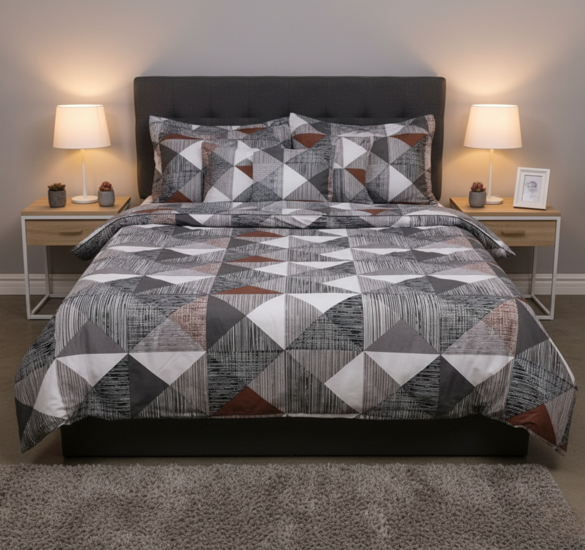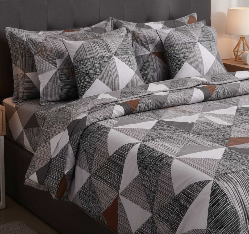 8 PCs Winter Razai Set- Grey Triangles